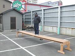 これだけの梁りの長さ(幅50cm×長さ520cm)にもかかわらずかなりの強度をもつトラスパネル。中心部に65kgの大人が乗っても殆どたわみが発生しない
